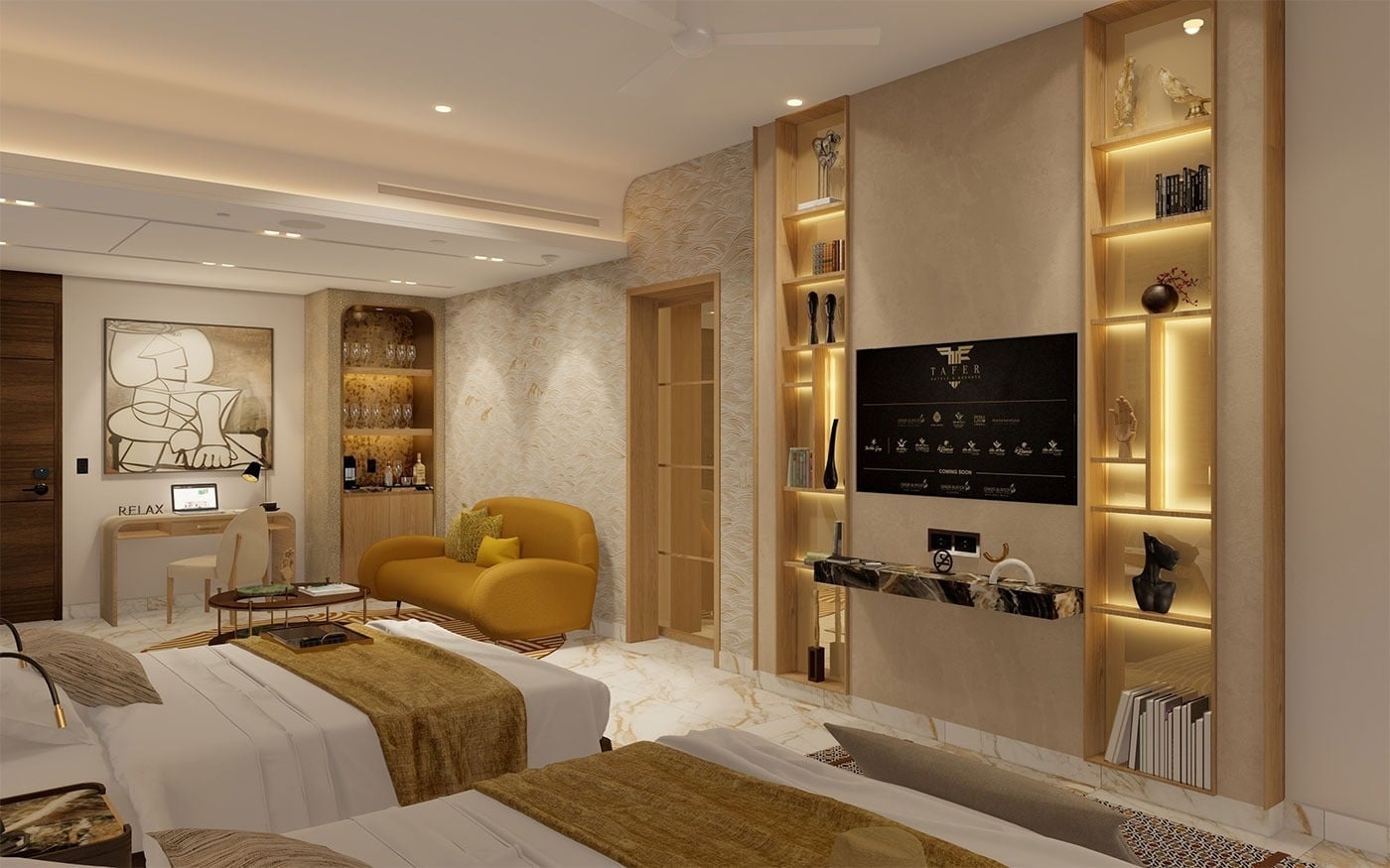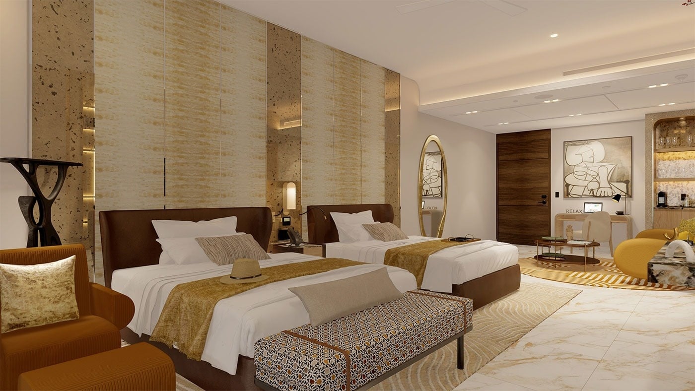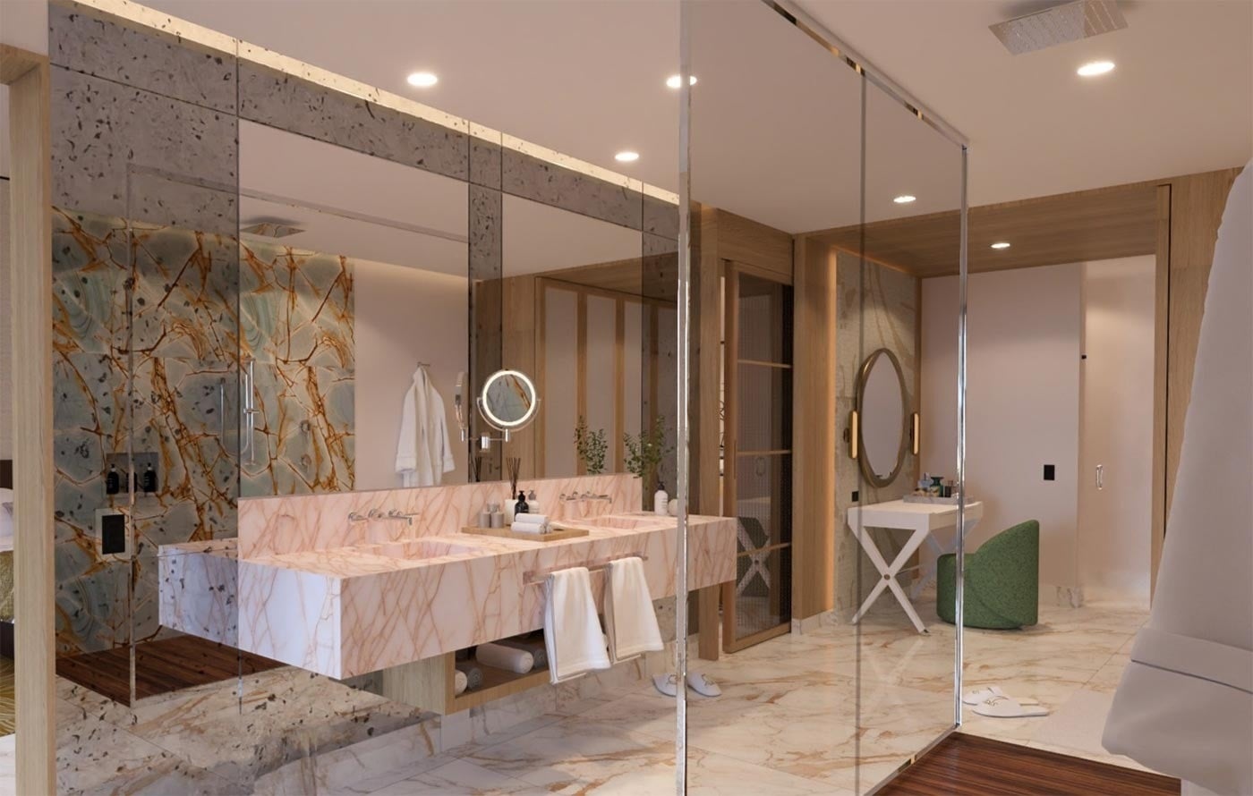 With an average floor area of 1,539 sq.ft, this elegant one-bedroom suite is perfect for those seeking comfort and privacy with ocean views. Ideal for couples or small families, it combines sophisticated interiors with thoughtful details for a high-end stay.